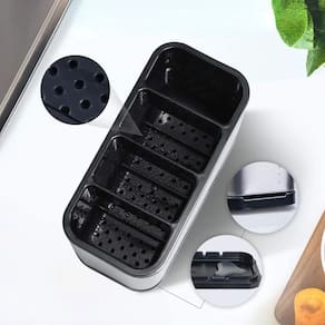Nosso porta-talheres em aço inox com 4 divisórias é a solução perfeita para manter seus talheres sempre organizados e secos. Seu design moderno e compacto se encaixa em qualquer cozinha, economizando espaço e adicionando um toque de elegância. Feito em aço inox de alta qualidade, é resistente à corrosão e fácil de limpar. Destaques: - Organização eficiente: 4 divisórias espaçosas para cada tipo de talher. - Material durável: Aço inox resistente à ferrugem e fácil de limpar. - Design moderno: Se adapta a qualquer estilo de cozinha. - Praticidade: Drenagem rápida da água, evitando a proliferação de bactérias. Organize sua cozinha com estilo com o Porta-talheres inox! Especificações Técnicas: - Modelo: Porta Talher Escorredor - Material: Aço Inoxidável, Plástico Resistente. - Dimensões Aprox.: 18cm X 13cm X 8cm Itens Inclusos na Embalagem: - 01x Porta Talher Escorredor Marca: shop mix