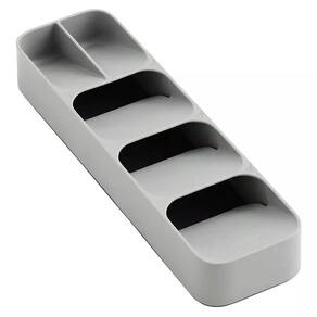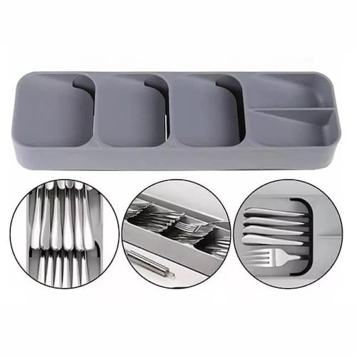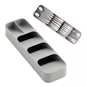 Características: Material: Polipropileno Cor: Cinza Base Antiderrapante Cinco Divisórias: Faca, Garfo, Colher e Talheres de Sobremesa.