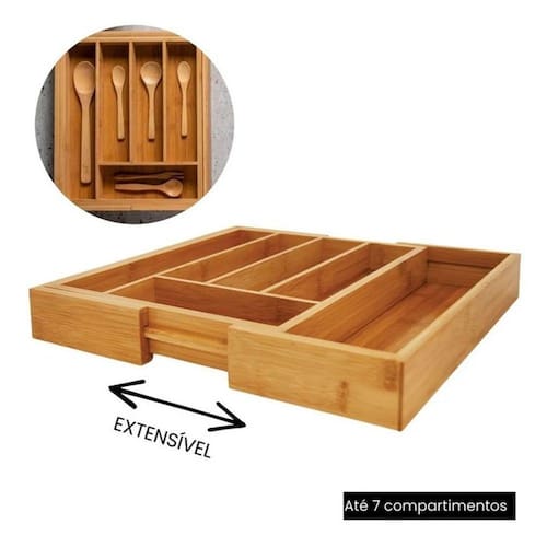 PORTA TALHERES E UTENSÍLIOS AJUSTÁVEL PARA GAVETA EM BAMBU 7 DIVISÕES