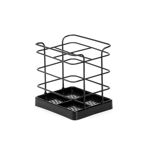 Porta-Talheres Arthi Black (2363) - Divisórias e Base Plástica O Porta-Talheres Quadrado da Arthi é o acessório ideal para organizar e secar seus talheres na bancada. Seu design combina a modernidade da cor preta com divisórias internas para separação e uma base plástica, facilitando a drenagem e a limpeza. Características Físicas e Funcionais: Design Moderno: Estrutura externa com acabamento na cor Black (preto) que confere um visual contemporâneo à sua cozinha. Organização Eficiente: Possui divisórias internas que permitem separar talheres por tipo (garfos, colheres), facilitando a organização e a secagem. Base Plástica: A base é removível e fabricada em plástico, o que facilita a drenagem da água e a higienização do escorredor, evitando acúmulo de sujeira. Formato Quadrado: Design compacto, ideal para otimizar o espaço na bancada. Marca: Arthi (Ref. 2363). Especificações Técnicas: Funcionalidade: Escorredor e Organizador de Talheres. Dimensões: Comprimento 14,5 X Largura 12,5 X Altura 14,2 cm Material: Aço/Metal (corpo Black) e Base Plástica.