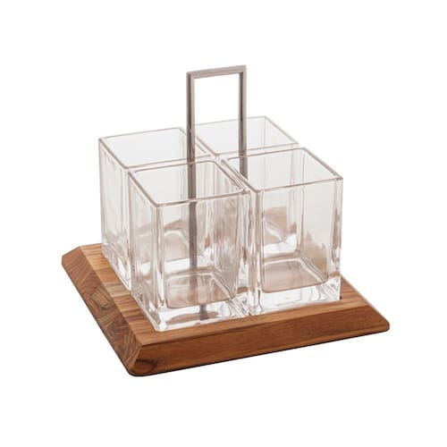 O Porta Talheres de Cristal com 4 Divisórias e Base de Madeira Teca da Wolff é a expressão máxima de sofisticação e praticidade para a sua cozinha.