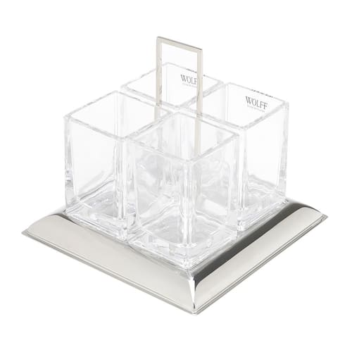 Elegância e Sofisticação à Mesa O Porta Talheres de Cristal com 4 Divisórias e Base de Prata Torcello da Wolff é a escolha definitiva para adicionar um toque de requinte à sua mesa de jantar. Design Exclusivo Com sua combinação de cristal e prata, este porta talheres apresenta um design elegante e contemporâneo que se destaca em qualquer ambiente. Organização Prática Com dimensões de 24x22cm, o porta talheres Torcello oferece espaço suficiente para organizar seus talheres de forma prática e acessível, mantendo-os sempre à mão durante as refeições. Acabamento Premium Fabricado com materiais de alta qualidade, como o cristal e prata, este porta talheres é resistente e durável, garantindo anos de uso sem perder seu brilho e charme. Versatilidade de Uso Além de sua função principal de organizar talheres, o Porta Talheres Torcello também pode servir como um elegante elemento decorativo em sua mesa, complementando a decoração com sofisticação.
