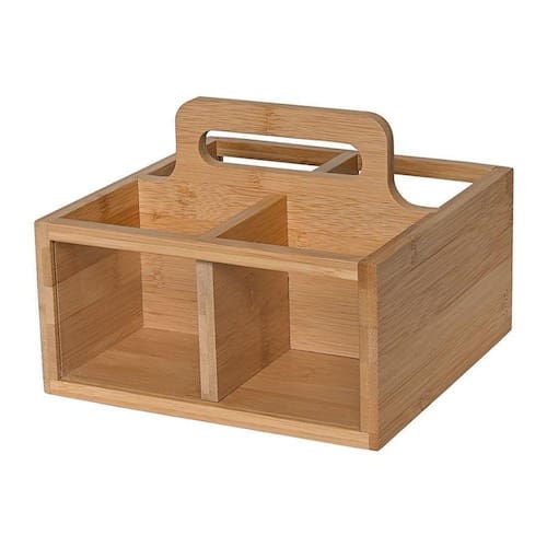 Porta Talheres Em Bambu Com Visor De Acrílico Ecokitchen - Mimo Style Porta Talheres em Bambu com Visor de Acrílico Ecokitchen- Mimo StyleCom o Porta Talheres com Visor Acrílico seus talheres ou acessórios de cozinha estarão sempre à mão. Ideal para decorar e organizar a cozinha e o serviço de mesa posta. Feito em Bambu com visor em acrílico, com 4 divisões e alça de apoio. cor natural de madeira.Medidas: Altura: 15 cm Largura: 20 x 20 cmMaterial: Bambu e AcrílicoPeso: 870 GramasMarca: Mimo StyleOBS; objetos que ambientam as imagens, não acompanham o produto.