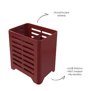 A utilização do ;Porta Talheres em Plástico é muito bem vinda quando o assunto é cozinha e banheiro, por se tratar de um produto sólido, ele evita a contaminação, transmissão e a proliferação de bactérias, insetos e roedores. Além disso, quem não gosta de um ambiente alegre e descontraído? O plástico, por se tratar de um material sólido, permite ousarmos nas cores da nossa decoração com diversos tons!