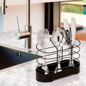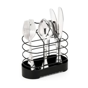 escorredor de talheres, e porta talher, preto em aço vai deixar a sua cozinha com um design mais moderno. Produto leve e resistente aço e vai combinar e organizar a pia da sua cozinha. Características: