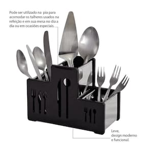 Com três divisórias, você poderá separar seus talheres de forma prática e organizada, facilitando o acesso na hora da refeição. Além disso, as laterais em polipropileno pp preto dão um toque de estilo ao produto.