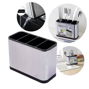Tipo: Escorredor Porta Talheres Material: Aço inoxidável e plástico PP Quantidade de divisões: 4 Sistema de drenagem: Sim Formato: Retangular Dimensões aproximadas: