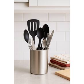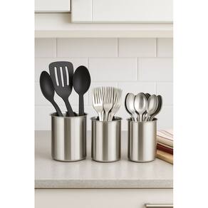 Com design simples e funcional, mede 12 x 12 x 18 cm, sendo ideal para organizar garfos, facas, colheres e utensílios de uso diário.