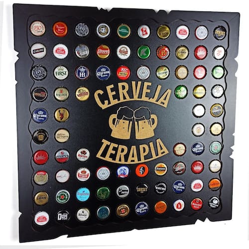 Quadro porta tampinhas decorativo para sala área de festas cantinho do churrasco - cervejaterapia cor preto Aqui estão nossos novos quadros da linha rustic modelo 2021.