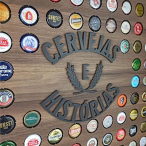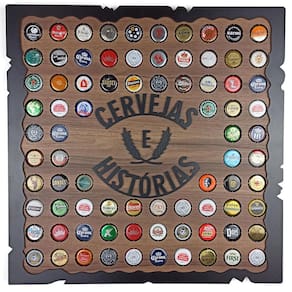 Porta tampinhas quadro decorativo para sala área de festas churrasqueira - cervejas e histórias cor nogal Aqui estão nossos novos quadros da linha rustic modelo 2021.