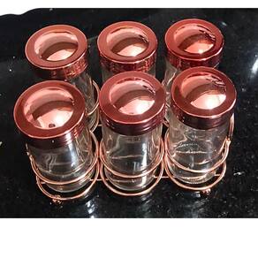 Porta Tempero Cozinha 6 Potes Rose Gold Potinhos Condimentos
