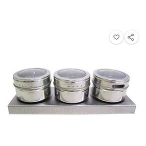 Porta tempero condimento magnético inox 3potes imã geladeira Super kit com 3 porta temperos condimentos magnético inox 3 potes imã geladeira