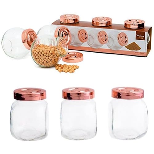 Porta Tempero Condimentos 3 Potes Vidro Rose Gold Cozinha Característica Porta condimentos com tampa rose gold, produto com a moda atual e requinte para sua casa, produto com qualidade. Porta temperos, a organização perfeita para sua cozinha, para organizar e facilitar na hora de preparar sua receitas, com esse lindo kit terá mais facilidade em encontrar os temperos, um produto de ótima qualidade com requinte e bom gosto. Altura - 8cm Capacidade em peso - 190g Capacidade de conteúdo - 150ml