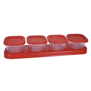 Medidas aprox. Do kit 33x6x8 Cm De cada pote: 6 x 8 cm alt x larg Composição: Plástico Vermelho Ref. Temp4 Keita Marca: Não Informado