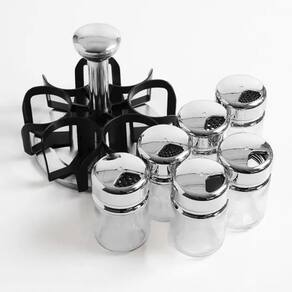 Porta Condimentos com 6 recipientes em vidro. Temos duas cores disponíveis dourado e prata e basta selecionar a cor de sua preferência antes de enviar para o carrinho de compras.