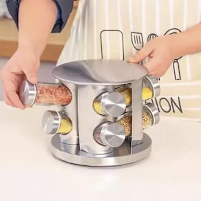 A estrutura de aço inoxidável permite maior durabilidade e elegância na sua cozinha, além de ser fácil de limpar. com a base giratória do produto, sua casa não será mais a mesma. Esse design permite uma maior organização e, ao mesmo tempo, agrega elegância e charme à sua cozinha. É o acessório ideal que você estava procurando. Este produto é adequado para ser colocado encima da mesa, oferecendo a possibilidade de movê-lo sem fazer nenhum tipo de adaptação. Organização e design moderno para sua casa. Marca: Não Informado