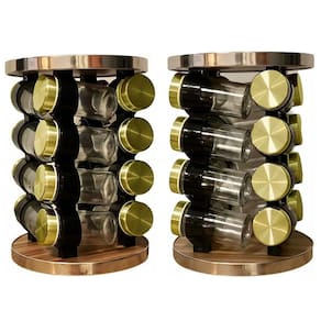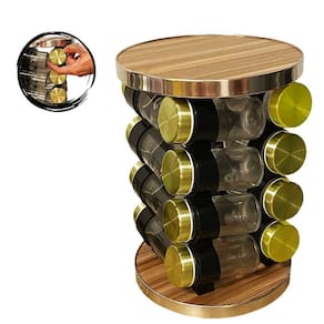 Item: Porta Tempero Giratório 16 Potes Vidro Suporte Cor Madeira Cor da Tampa do Porta Temperado: Dourada Lugar de colocação: Mesa Material da estrutura: Aço inoxidável Material do frascos para condimento: Vidro Quantidade de níveis: 1 É extensível: Não Base Giratória!