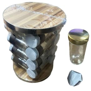 Nome do Produto: Porta Tempero Giratório 16 Potes Vidro Suporte Cor Madeira FUY651 PORTA CONDIMENTOS EM AÇO INOXIDAVEL COM16 PEÇAS COM SUPORTE