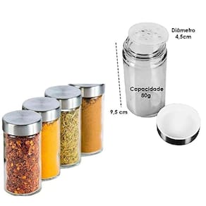 Cada compartimento(Armazenagem do tempero) - Altura: 9.5cm - Diâmetro: 4.5cm
