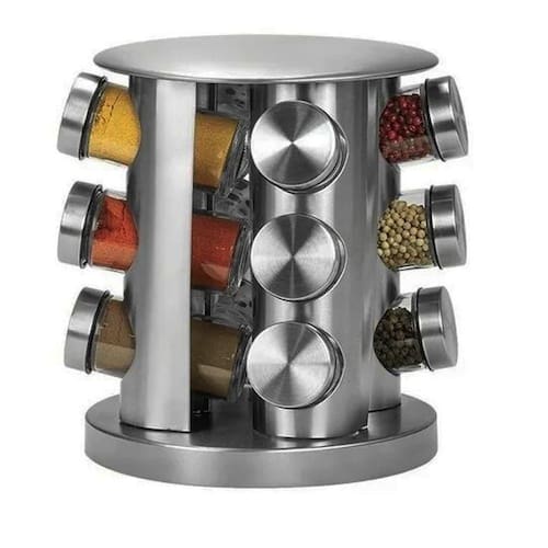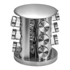 Possui base giratória: visualize todos os temperos com um simples giro Material: vidro e Aço Inox Possui 12 Potes de 80g