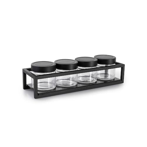 Porta Condimentos Chá Temperos de Bancada com 4 Potes de Vidro - Forma Utilidades