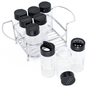 Porta Temperos com 9 Potes Vidro Suporte Cromado Passerini