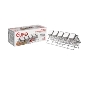 Porta Temperos com Suporte em Inox 5 Peças - Euro Conjunto com 5 porta condimentos quadrado de vidro com tampa em inox. Acompanha suporte em aço cromado que acondiciona e facilita o manuseio do produto.