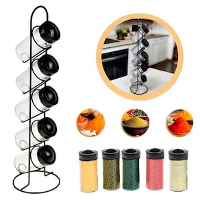 Porta tempero organizador de condimentos vidro e preto Porta temperos condimentos com 5 potes em vidro com suporte