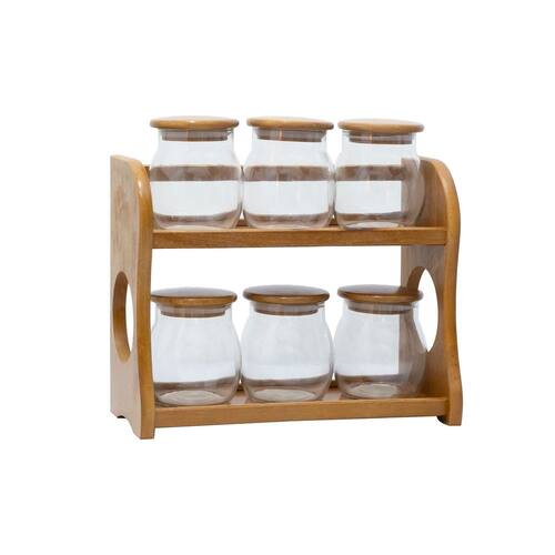 Porta Temperos Condimentos em Madeira 6 Potes Herméticos 550ml ZT2003 BTC