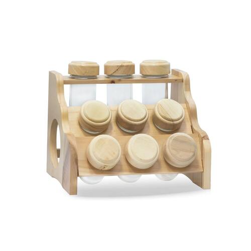 Porta Temperos Condimentos Suporte em Madeira 9 Potes de Vidro 80ml