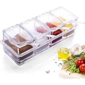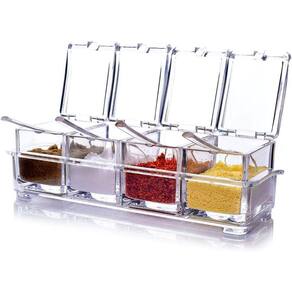 Porta Condimentos Organizador Tempero Potes Acrilico com Colher Cozinha