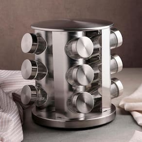 Mantenha sua cozinha organizada e seus temperos sempre à mão com o Porta Temperos Giratório em Aço Inox com 12 Potes. Seu design giratório facilita o acesso rápido aos condimentos, tornando o preparo das suas refeições mais prático e eficiente. Fabricado em aço inox de alta qualidade, é durável, fácil de limpar e adiciona um toque moderno à sua cozinha.