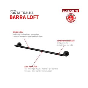 O Porta Toalha Barra Loft 2040 B82 Preta Lorenzetti é perfeito para manter suas toalhas organizadas e ao alcance das mãos. Com design moderno e elegante, ele combina perfeitamente com qualquer estilo de banheiro. Fabricado em material resistente, garante durabilidade e qualidade. Sua cor preta traz um toque de sofisticação ao ambiente. Além disso, o porta toalha conta com uma barra ampla que acomoda várias toalhas ao mesmo tempo. Mantenha seu banheiro organizado e com um visual incrível com o Porta Toalha Barra Loft 2040 B82 Preta Lorenzetti.