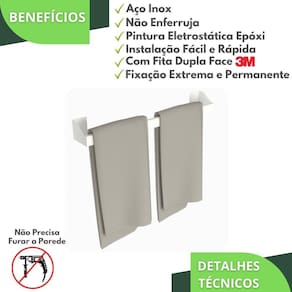 O Porta Toalha de Banho Adesivo Dupla Face foi projetado para quem não quer furar a parede e busca por qualidade na fixação e boa aderência em ambientes molhados.