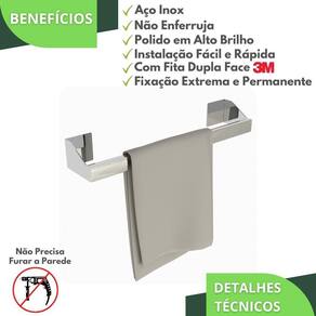Com um design minimalista, o preferido pelos arquitetos nos últimos tempos, o Porta Toalha de Rosto é fabricado utilizando aço inox com acabamento polido em alto brilho proporcionando maior durabilidade, resistência e garantindo que não ocorrerá oxidação nem ferrugem.