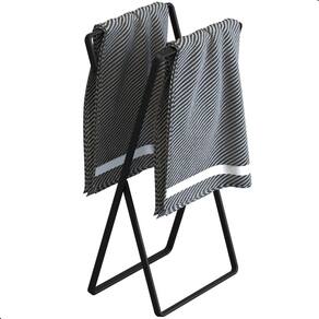 Porta Toalha de Rosto Banheiro de Bancada Duplo Preto Seul com design contínuo em aço. Estrutura firme e bem balanceada, desenvolvida para acomodar duas toalhas de forma organizada e sem ocupar espaço excessivo. Produzido em aço de alta resistência, recebe pintura eletrostática epóxi Preto Fosco, garantindo proteção contra umidade e um acabamento uniforme e durável. Ideal para organizar toalhas de mão com elegância e praticidade.
