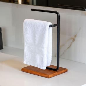 Com o Porta Toalha de Rosto Eleganza em Metal Preto e Madeira Peroba, você une funcionalidade e estética. Adicione um toque de luxo à sua rotina diária e mantenha o seu banheiro organizado com este porta toalha que combina materiais de alta qualidade com um design elegante.