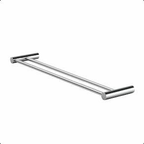 Fabricado em metal de alta qualidade, o Porta Toalha Duplo é feito de alumínio naval, garantindo resistência e durabilidade ao produto. Além disso, ele não utiliza plástico em nenhum detalhe, sendo 100% metal. Disponível na cor prata polido alto brilho, ele também está disponível na opção preto fosco acetinado.