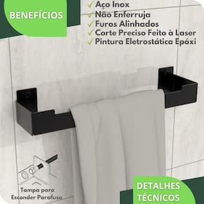 Com um design minimalista, o preferido pelos arquitetos nos últimos tempos, o Porta Toalha de Rosto é fabricado utilizando aço inox com acabamento em Pintura Eletrostática Epóxi Fosca proporcionando maior durabilidade, resistência e garantindo que não ocorrerá oxidação nem ferrugem.