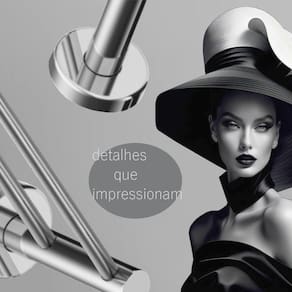 Disponível no Prata Alto Brilho, Escovado e Preto Fosco.