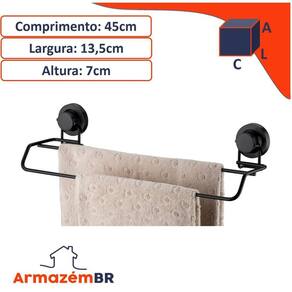A ventosa gruda somente em superfícies lisas e brilhantes, azulejos, cerâmicas, porcelanatos,vidros e espelhosA ventosa não fixa em superfícies foscas ou porosas, mármore, granitos ou mdf - madeiraTOALHEIRO DUPLO COM VENTOSAMarca: FUTURECódigo: 4056PTCor/acabamento: Preto FoscoO Toalheiro é um produto que facilita o dia a dia, tem capacidade para até 2 toalhas, e suporta até 5 Kg.Este Toalheiro é fabricado em Aço Carbono e possui acabamento que garante maior resistência a impactos. O sistema de fixação é prático e rápido, dispensa o uso de furos e a sujeira, pois conta com um sistema de sucção a vácuo que permite a rápida instalação em superfícies lisas e brilhantes.As ventosas da linha Praticità Utile da Future são extra-fortes e, neste produto, possuem capacidade de suportar até 5 kg. Mantenha seu banheiro organizado de forma prática, sem furos, sujeira e ferramentas.Especificações:Matéria-prima: Aço CarbonoCor/acabamento: Preto FoscoLinha: Praticità UtileMedidas:Comprimento: 45cm / Largura: 13,5cm / Altura: 7cm / Peso: 0,395 kgNão acompanham os objetos que decoram o produto.As fotos, textos e layout aqui veiculados são de propriedade da Loja. Proibida a veiculação sem nossa autorização.