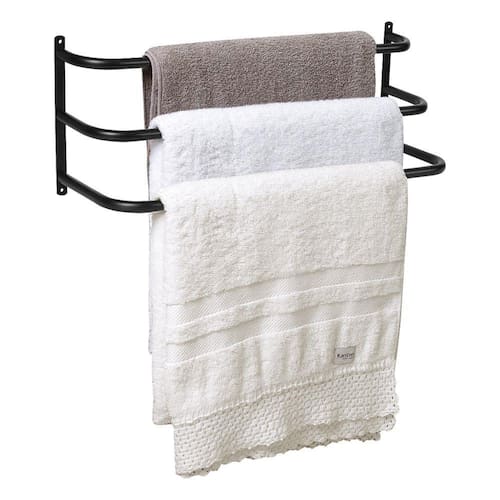 Ter um banheiro organizado traz leveza e praticidade para sua rotina. Para que o banheiro fique em ordem é necessário o uso de alguns produtos. O suporte para toalhas é indispensável pois ele comporta até três toalhas, podendo ser intalado na parede ou na porta do banheiro, quarto entre outros luages, a instalação ocorre de maneira fácil e prática pois já acompanham parafusos na mesma cor da peça e buchas.