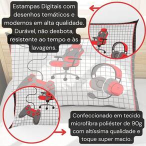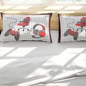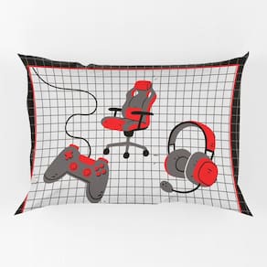 Porta Travesseiro Fronha Avulsa Game Streamer 70cm X 50cm - Estampa Digital Juvenil Infantil Decorativo Gamer Geek Nerd Cor Vermelho