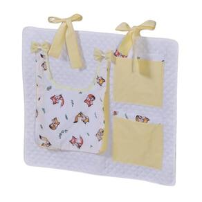 Porta Treco e Fralda Organizador Quarto de Bebê Menino Menina 1 Peça Com Laço Cor: Raposa amarelo O porta fraldas é ideal pra ter sempre a mão os produtos mais no dia a dia com seu bebê. Nosso porta fralda/treco tem 2 bolsos menores, onde podem ser colocados produtos pequenos, e 1 bolso maior pra colocar as fraldas, roupas, toalhas ou itens maiores. Praticidade e decoração em um só produto. Sugestão de uso: Pendurado em varão ou no berço Contém na embalagem: 1 porta fraldas Medidas: 64cm larg x 54cm alt - 1 bolso 37cm alt x 27cm larg x 5cm prof - 2 bolsos 21cm alt x 18cm larg Composição: Matelado de microfibra 100% poliéster Tecido estampado e liso percal 180 fios 100% algodão - Foto ilustrativa, tonalidade da cor pode variar um pouco no produto real Produtos fabricados em Ibitinga-SP, a Capital Nacional do Bordado e do Enxoval. Marca: Não Informado Ean: 7793725575863