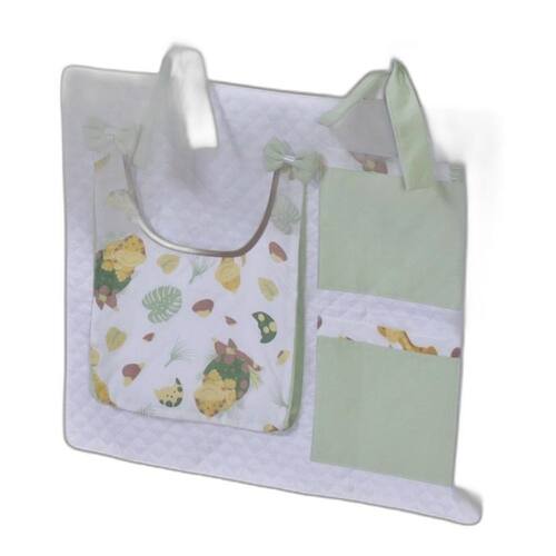Porta Treco e Fralda Organizador Quarto de Bebê Menino Menina 1 Peça Com Laço Cor: Dinossauro verde O porta fraldas é ideal pra ter sempre a mão os produtos mais no dia a dia com seu bebê. Nosso porta fralda/treco tem 2 bolsos menores, onde podem ser colocados produtos pequenos, e 1 bolso maior pra colocar as fraldas, roupas, toalhas ou itens maiores. Praticidade e decoração em um só produto. Sugestão de uso: Pendurado em varão ou no berço Contém na embalagem: 1 porta fraldas Medidas: 64cm larg x 54cm alt - 1 bolso 37cm alt x 27cm larg x 5cm prof - 2 bolsos 21cm alt x 18cm larg Composição: Matelado de microfibra 100% poliéster Tecido estampado e liso percal 180 fios 100% algodão - Foto ilustrativa, tonalidade da cor pode variar um pouco no produto real Produtos fabricados em Ibitinga-SP, a Capital Nacional do Bordado e do Enxoval. Marca: Não Informado