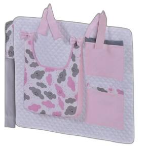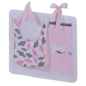 Porta Treco e Fralda Organizador Quarto de Bebê Menino Menina 1 Peça Com Laço Cor: Nuvem rosa O porta fraldas é ideal pra ter sempre a mão os produtos mais no dia a dia com seu bebê. Nosso porta fralda/treco tem 2 bolsos menores, onde podem ser colocados produtos pequenos, e 1 bolso maior pra colocar as fraldas, roupas, toalhas ou itens maiores. Praticidade e decoração em um só produto. Sugestão de uso: Pendurado em varão ou no berço Contém na embalagem: 1 porta fraldas Medidas: 64cm larg x 54cm alt - 1 bolso 37cm alt x 27cm larg x 5cm prof - 2 bolsos 21cm alt x 18cm larg Composição: Matelado de microfibra 100% poliéster Tecido estampado e liso percal 180 fios 100% algodão - Foto ilustrativa, tonalidade da cor pode variar um pouco no produto real Produtos fabricados em Ibitinga-SP, a Capital Nacional do Bordado e do Enxoval. Marca: Não Informado Ean: 7793725566724