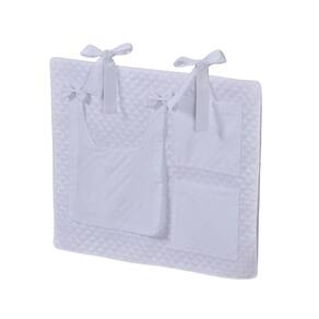 Porta Treco e Fralda Organizador Quarto de Bebê Menino Menina 1 Peça Com Laço Cor: Branco O porta fraldas é ideal pra ter sempre a mão os produtos mais no dia a dia com seu bebê. Nosso porta fralda/treco tem 2 bolsos menores, onde podem ser colocados produtos pequenos, e 1 bolso maior pra colocar as fraldas, roupas, toalhas ou itens maiores. Praticidade e decoração em um só produto. Sugestão de uso: Pendurado em varão ou no berço Contém na embalagem: 1 porta fraldas Medidas: 64cm larg x 54cm alt - 1 bolso 37cm alt x 27cm larg x 5cm prof - 2 bolsos 21cm alt x 18cm larg Composição: Matelado de microfibra 100% poliéster Tecido estampado e liso percal 180 fios 100% algodão - Foto ilustrativa, tonalidade da cor pode variar um pouco no produto real Produtos fabricados em Ibitinga-SP, a Capital Nacional do Bordado e do Enxoval. Marca: Não Informado Ean: 7793725566038