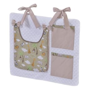 Porta Treco e Fralda Organizador Quarto de Bebê Menino Menina 1 Peça Com Laço Cor: Safari bege O porta fraldas é ideal pra ter sempre a mão os produtos mais no dia a dia com seu bebê. Nosso porta fralda/treco tem 2 bolsos menores, onde podem ser colocados produtos pequenos, e 1 bolso maior pra colocar as fraldas, roupas, toalhas ou itens maiores. Praticidade e decoração em um só produto. Sugestão de uso: Pendurado em varão ou no berço Contém na embalagem: 1 porta fraldas Medidas: 64cm larg x 54cm alt - 1 bolso 37cm alt x 27cm larg x 5cm prof - 2 bolsos 21cm alt x 18cm larg Composição: Matelado de microfibra 100% poliéster Tecido estampado e liso percal 180 fios 100% algodão - Foto ilustrativa, tonalidade da cor pode variar um pouco no produto real Produtos fabricados em Ibitinga-SP, a Capital Nacional do Bordado e do Enxoval. Marca: Não Informado Ean: 7793725576105