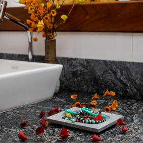 01 Porta Treco Saboneteira Petisco Multifunção Pedra Sabão Raso.