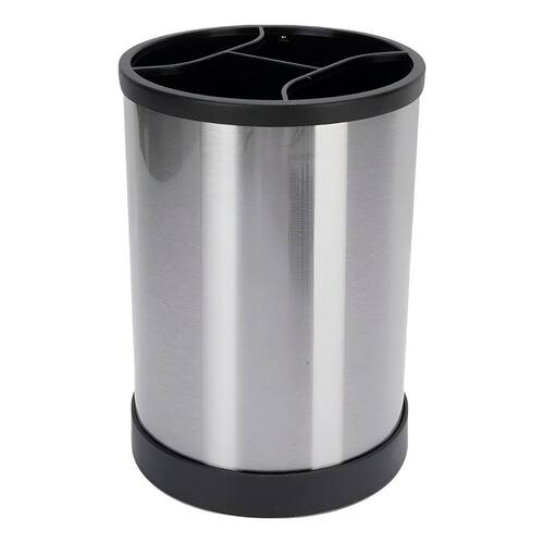 Transforme a bagunça da sua bancada em um espaço funcional e elegante! Oporta-utensílio giratório combina um design moderno com a praticidade de um escorredor multiuso, tornando-se um item indispensável para a sua rotina culinária. -Com um leve toque, você tem acesso imediato a todos os seus utensílios, sem precisar tirar tudo do lugar para encontrar a espátula ou o batedor que precisa. -Mantenha facas, conchas, colheres de pau e muito mais em um único lugar, de forma organizada e eficiente. -Com acabamento em aço inox, ele adiciona um toque de modernidade e sofisticação a qualquer bancada ou mesa. Especificações Técnicas: - Material: Aço Inox/Plástico - Cor: Prateado - Dimensões Aprox.: 17cm (ALTURA) x 12cm (DIÂMETRO) - 4 divisões -Base giratória Itens Inclusos: - 01x Porta utensílios
